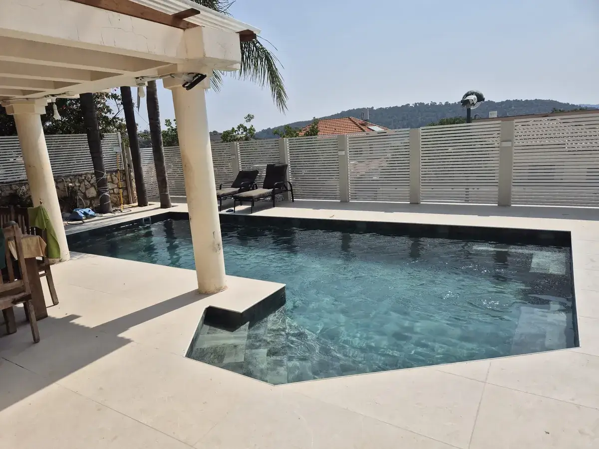 ירושלים והשפלה – לוזית בריכת בטון סקימרים, חיפוי PVC מדגם סטונטייל גריי פרויקטים בכל הארץ